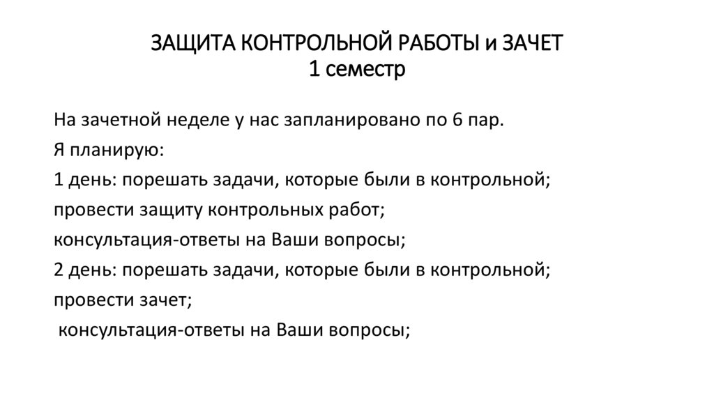 На зачетной неделе у нас запланировано по 6 пар.Я планирую: