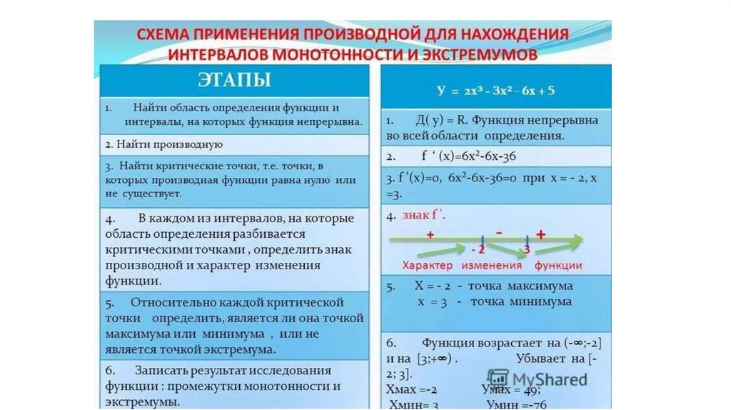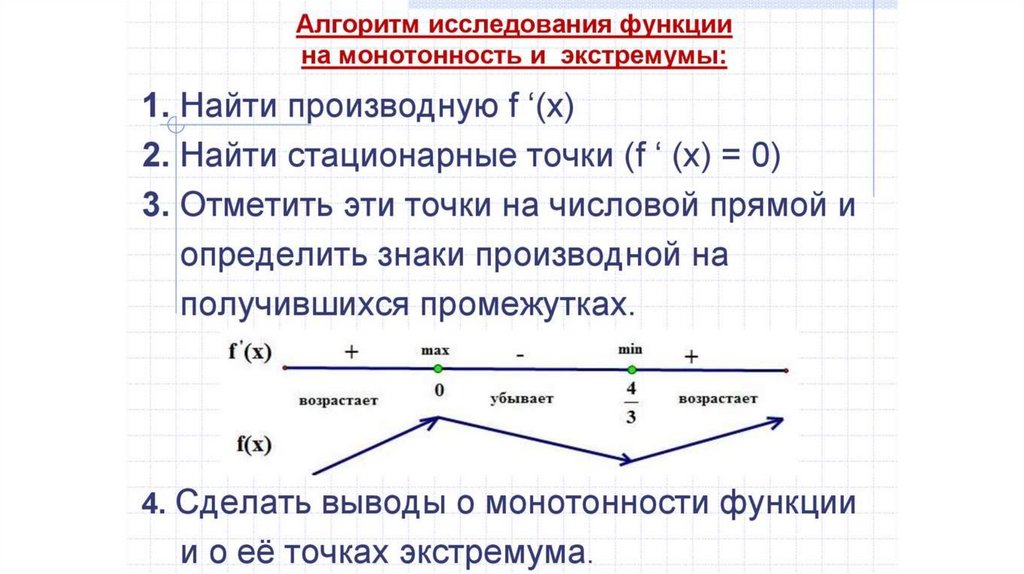 Выучить алгоритм исследования функции на монотонность и экстремумы.