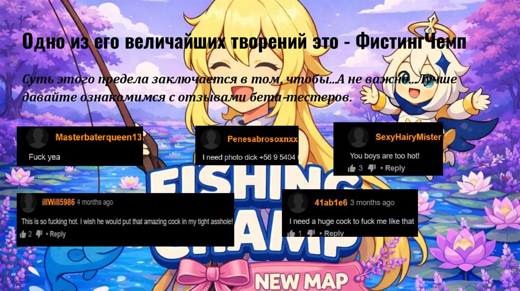 Одно из его величайших творений это - ФистингЧемпСуть этого предела заключается в том, чтобы…А не важно…Лучше