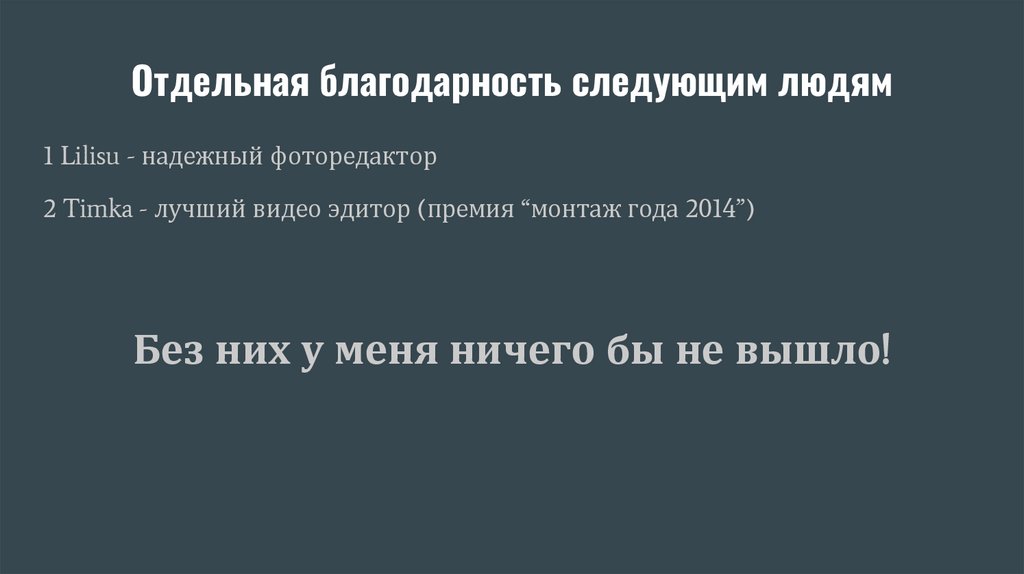 Отдельная благодарность следующим людям1 Lilisu - надежный фоторедактор