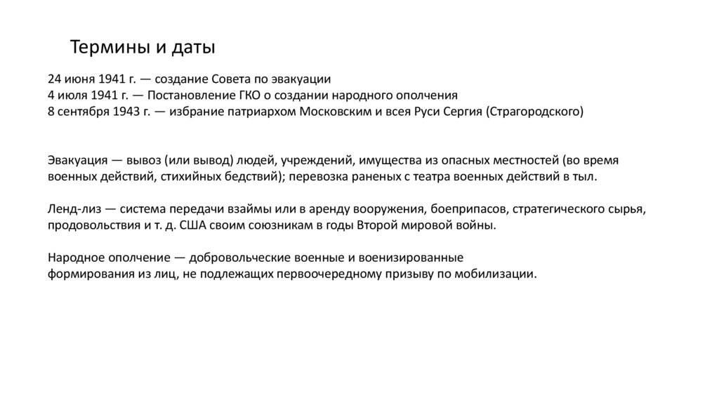 Термины и даты24 июня 1941 г. — создание Совета по эвакуации