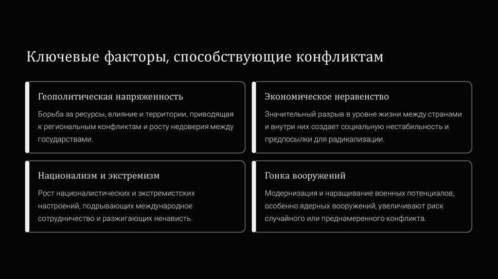 Ключевые факторы, способствующие конфликтамГеополитическая напряженность