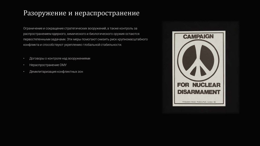 Разоружение и нераспространениеОграничение и сокращение стратегических вооружений, а также контроль за