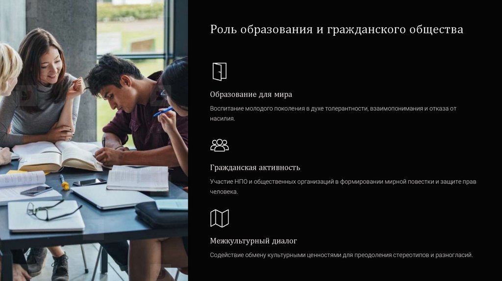 развитие глобального гражданского общества – все это необходимые шаги для построения мирного будущего.
