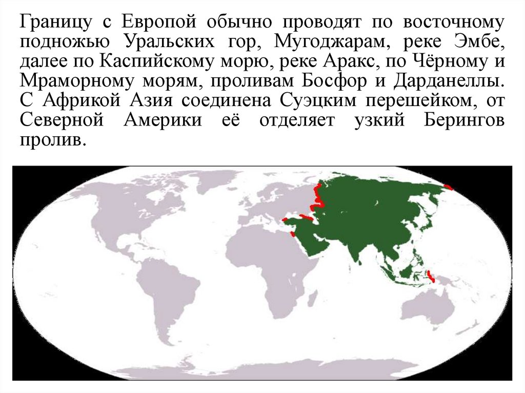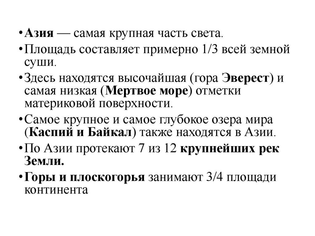 • Азия — самая крупная часть света.• Площадь составляет примерно 1/3 всей земной