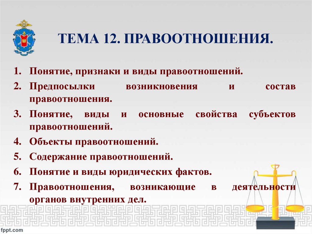 1. ТЕМА 12. ПРАВООТНОШЕНИЯ.
