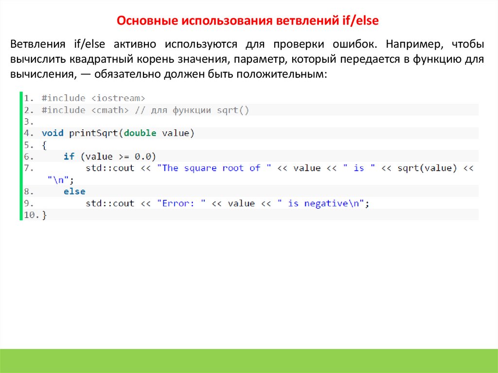 Основные использования ветвлений if/elseВетвления if/else активно используются для проверки ошибок. Например, чтобы