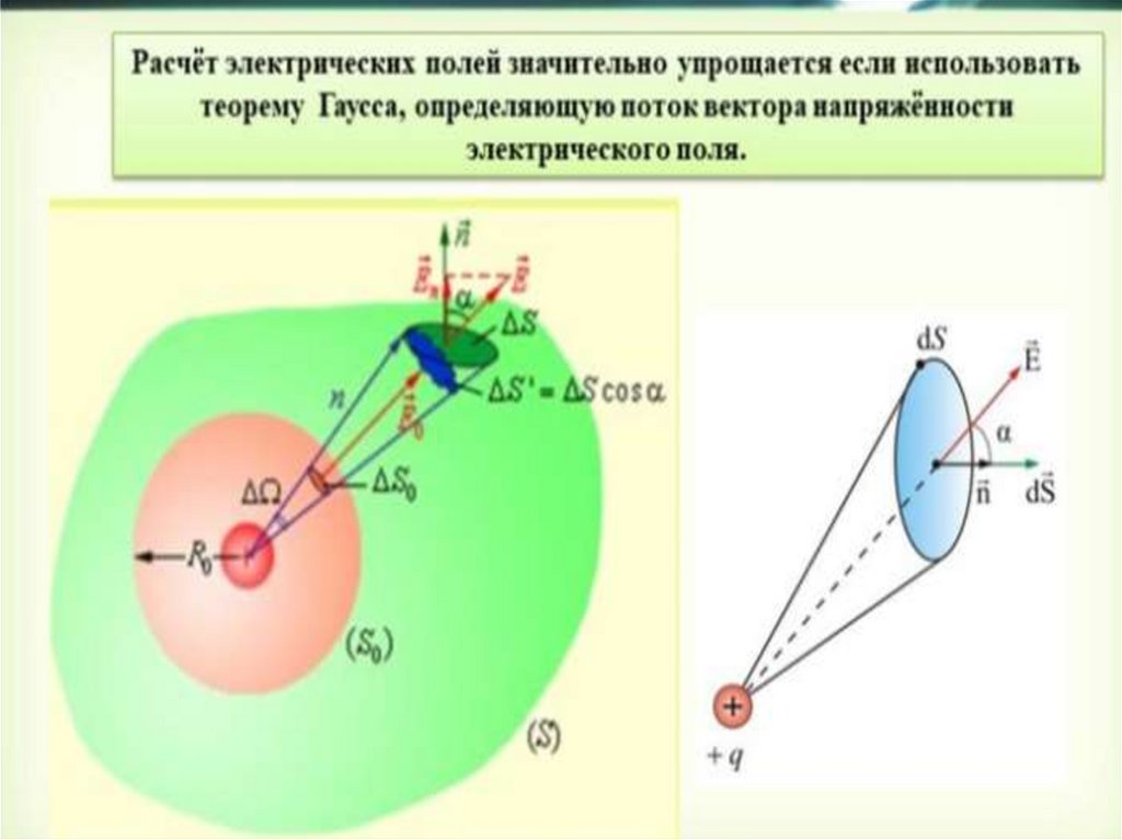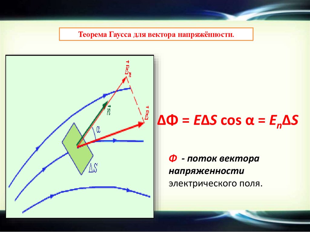 Теорема Гаусса для вектора напряжённости.ΔΦ = EΔS cos α = EnΔS