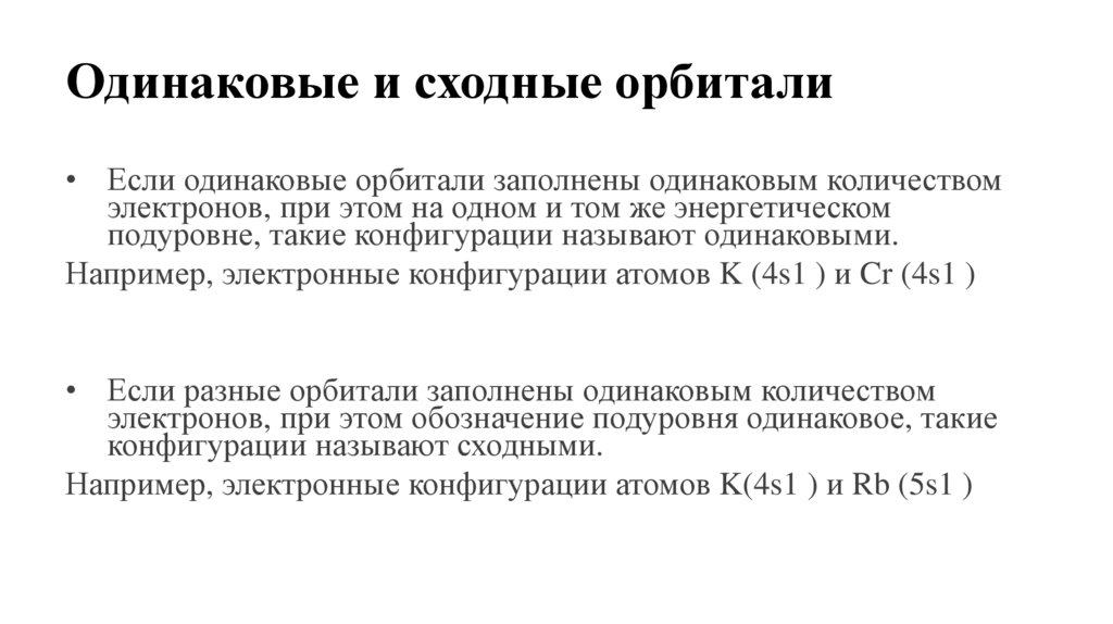 Одинаковые и сходные орбитали• Если одинаковые орбитали заполнены одинаковым количеством