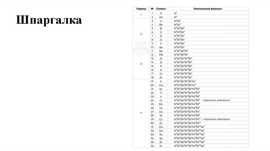 Например, электронные конфигурации атомов K (4s1 ) и Cr (4s1 )