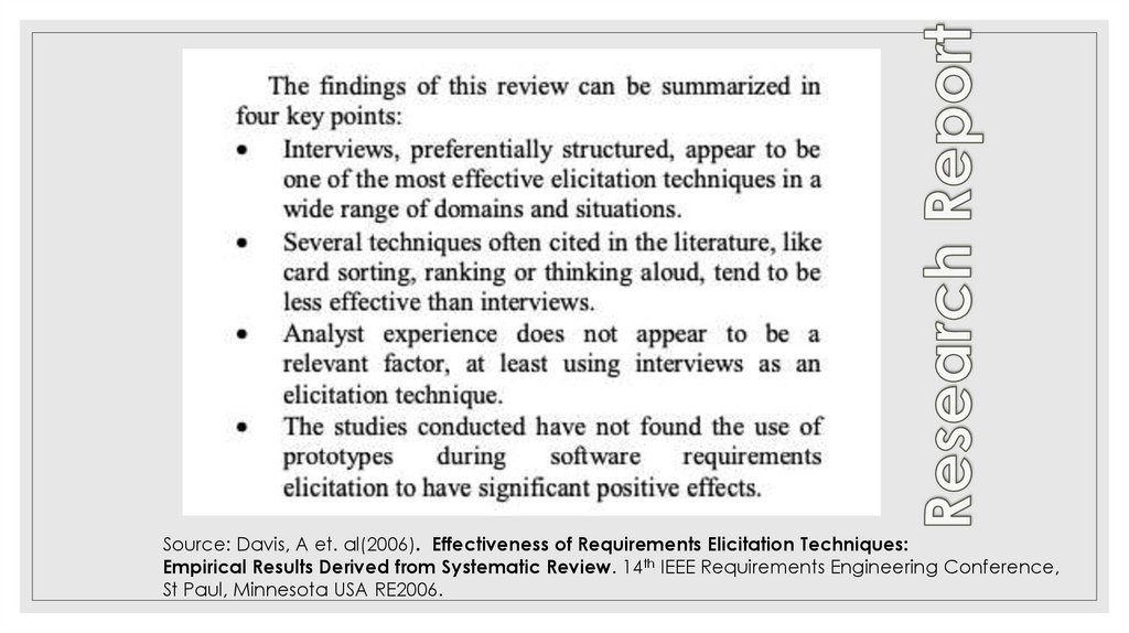 ◦ Source: Davis, A et. al(2006). Effectiveness of Requirements