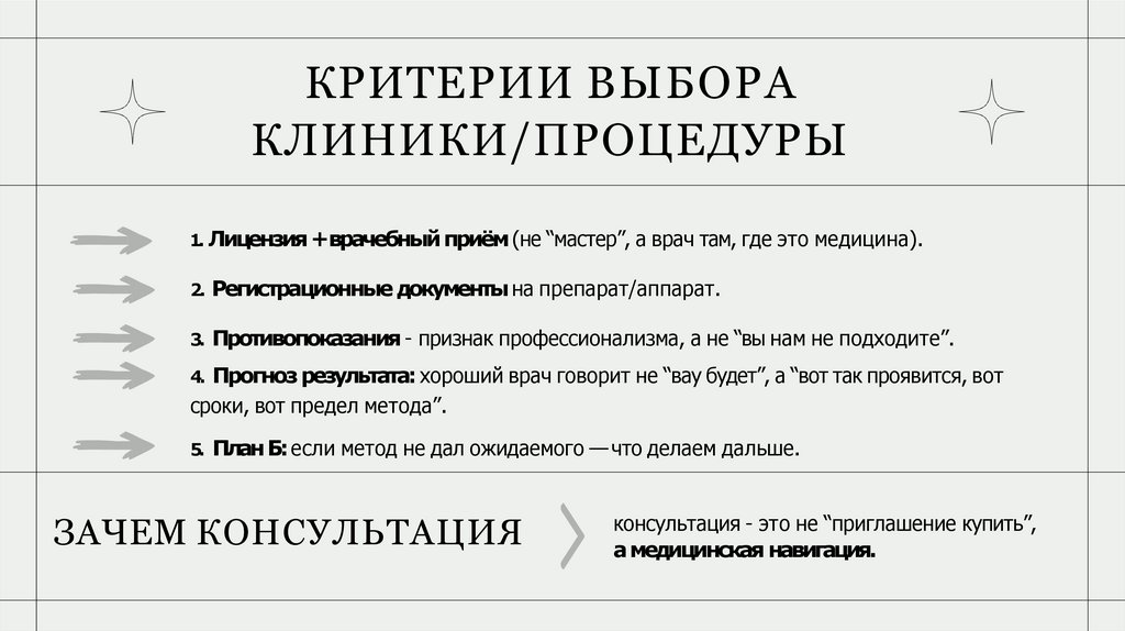 КРИТЕРИИ ВЫБОРАКЛИНИКИ/ПРОЦЕДУРЫ