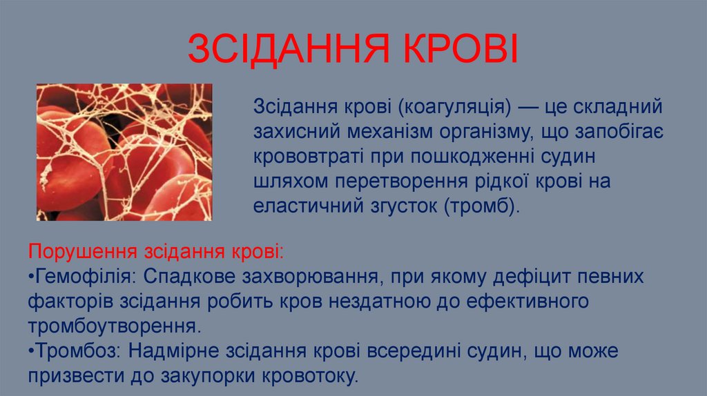 ЗСІДАННЯ КРОВІЗсідання крові (коагуляція) — це складний