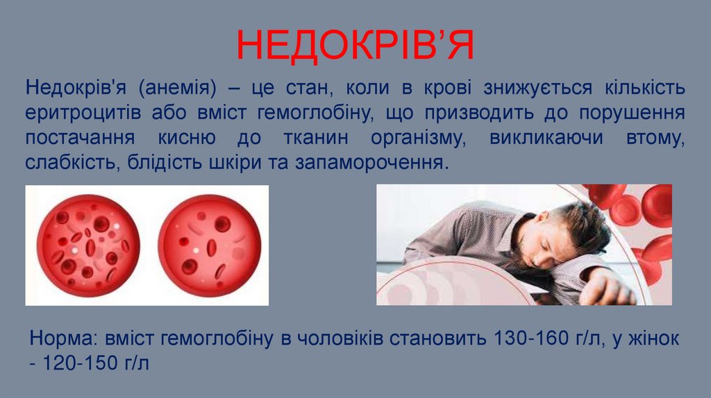 НЕДОКРІВ’ЯНедокрів'я (анемія) – це стан, коли в крові знижується кількість