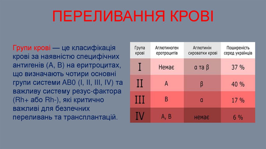 ПЕРЕЛИВАННЯ КРОВІГрупи крові — це класифікація