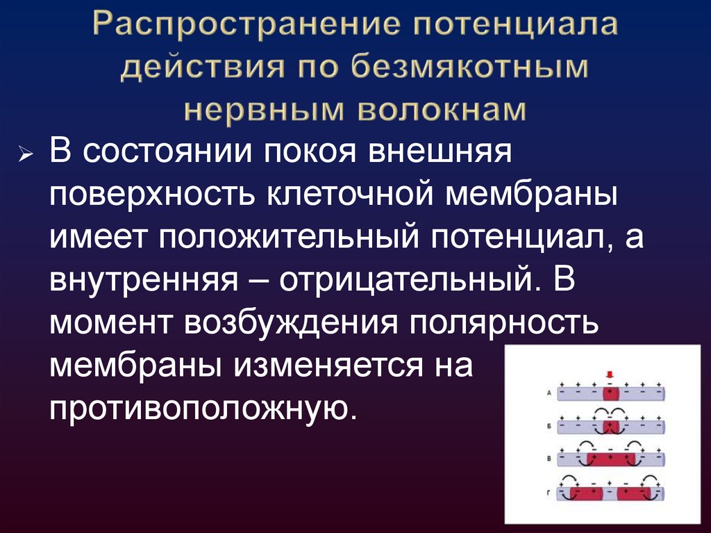 47. Распространение потенциала действия по безмякотным нервным волокнам