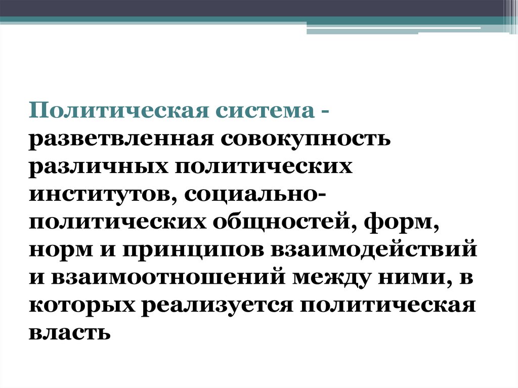 Политическая система разветвленная совокупностьразличных политических