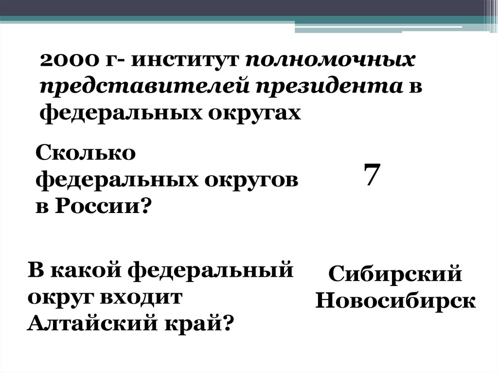 2000 г- институт полномочныхпредставителей президента в
