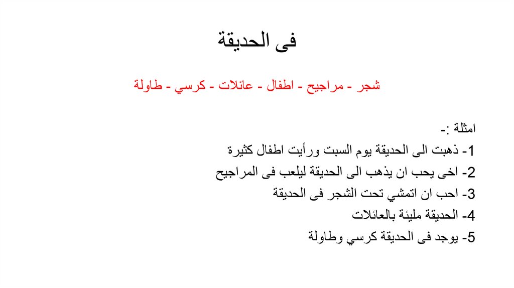 -1ذهبت الى الحديقة يوم السبت ورأيت اطفال كثيرة