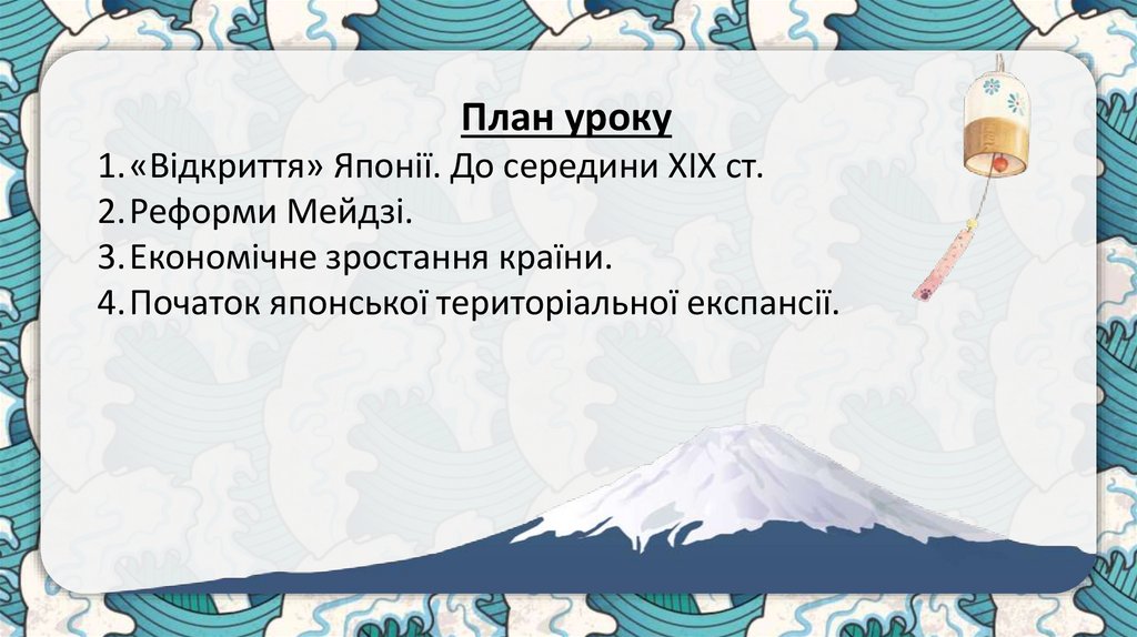 План уроку1.«Відкриття» Японії. До середини ХІХ ст.