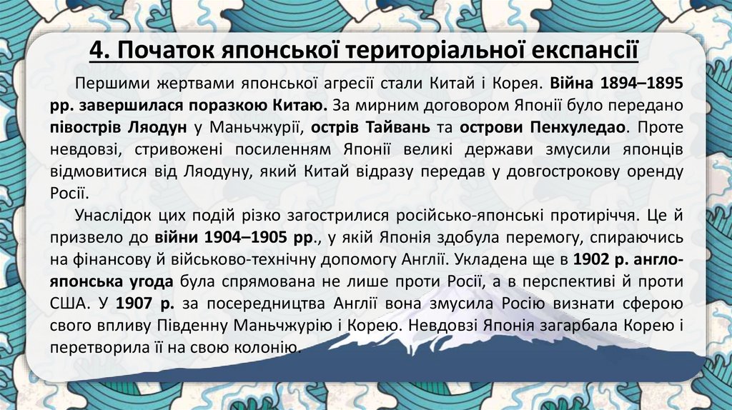 4.Початок японської територіальної експансії.