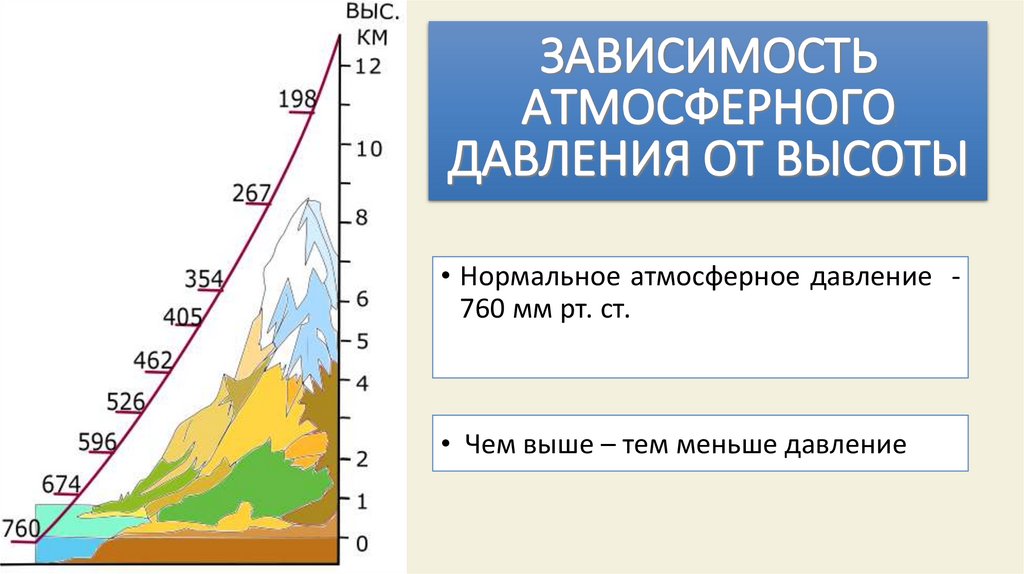 • Чем выше – тем меньше давление
