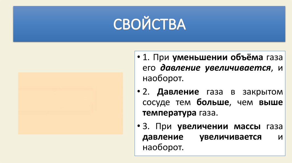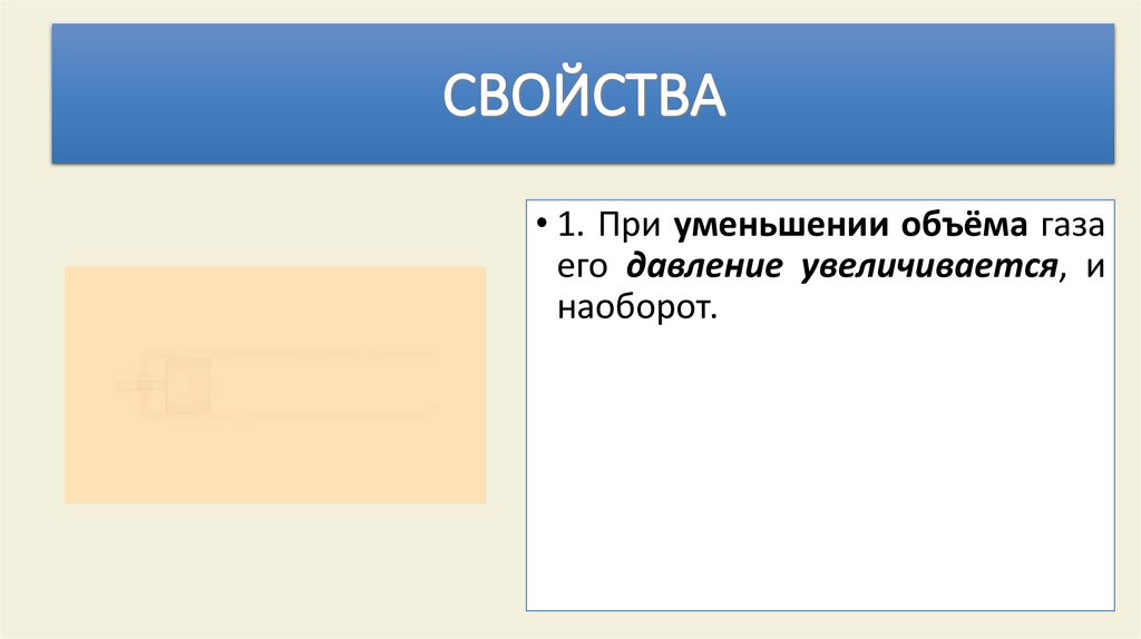 • 1. При уменьшении объёма газаего давление увеличивается, и