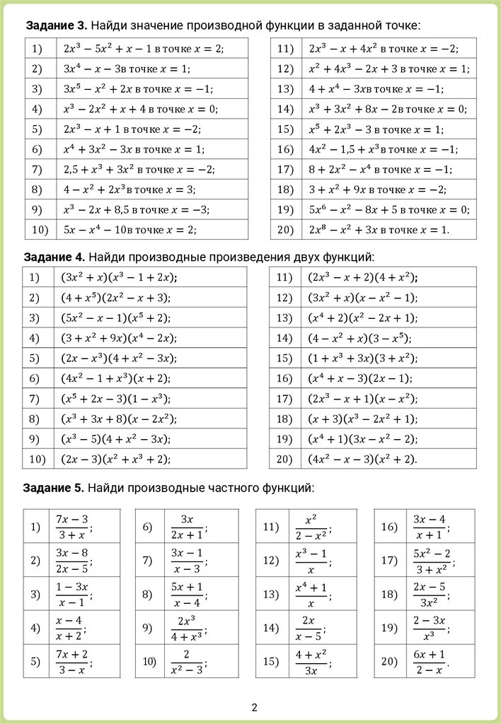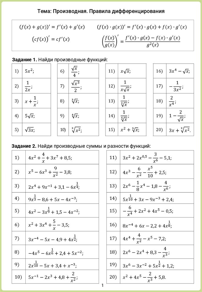 Тема: Производная. Правила дифференцирования