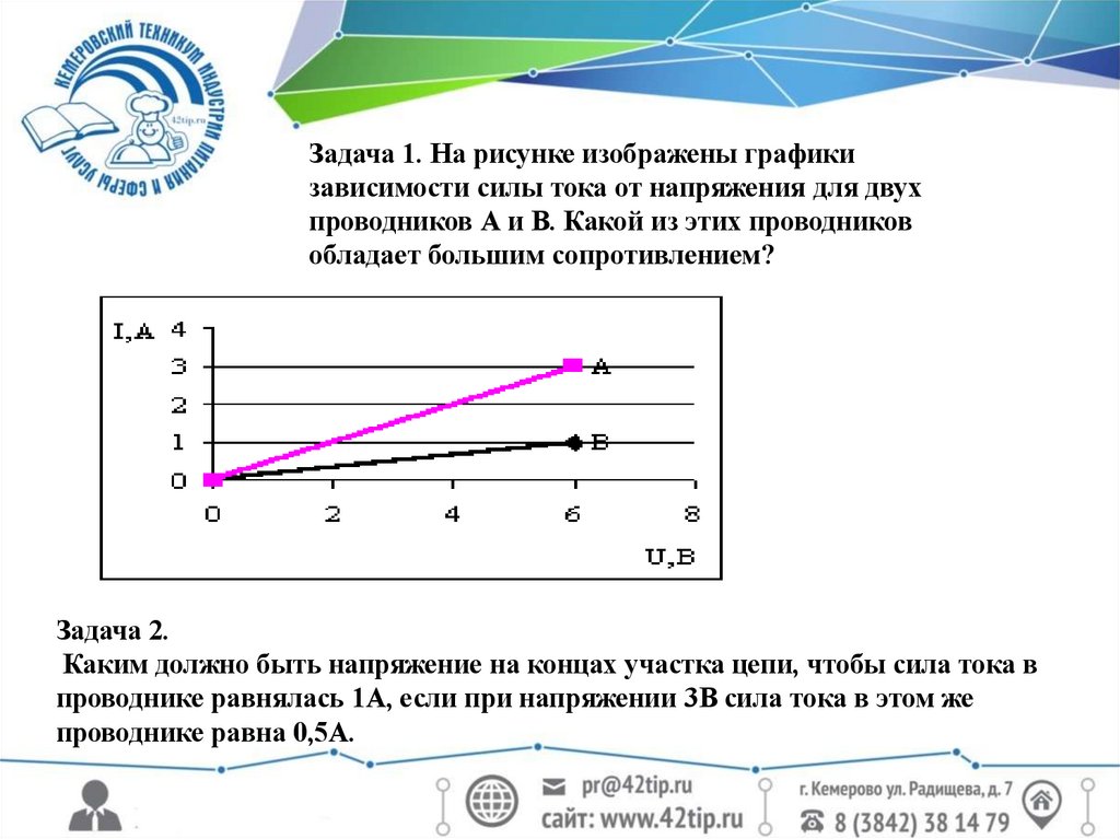 Задача 1. На рисунке изображены графикизависимости силы тока от напряжения для двух