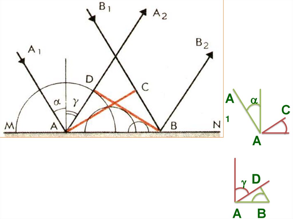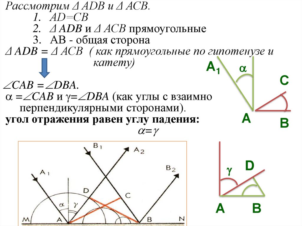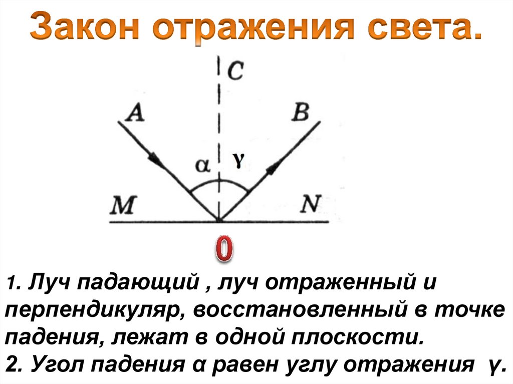 1. Луч падающий , луч отраженный иперпендикуляр, восстановленный в точке