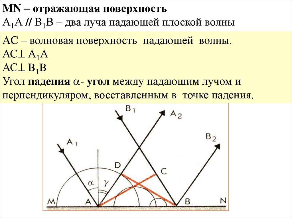 MN – отражающая поверхностьА1А // В1В – два луча падающей плоской волны