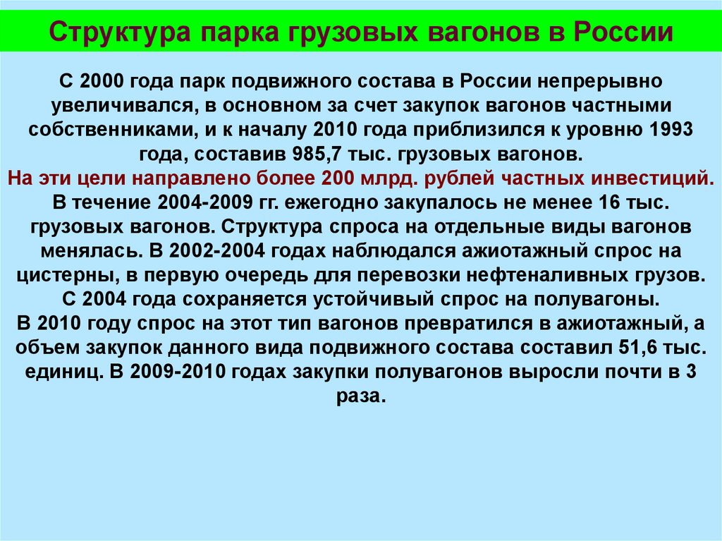 увеличивался, в основном за счет закупок вагонов частными