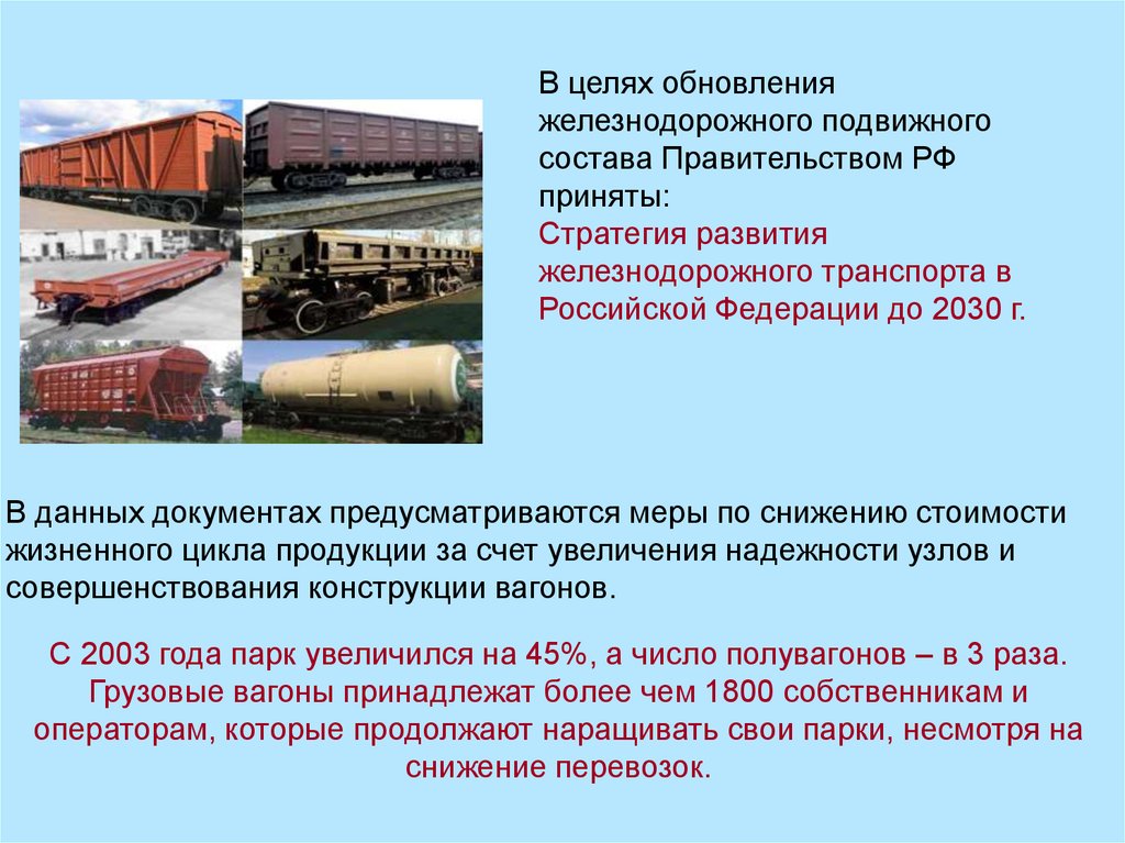 С 2003 года парк увеличился на 45%, а число полувагонов – в 3 раза.