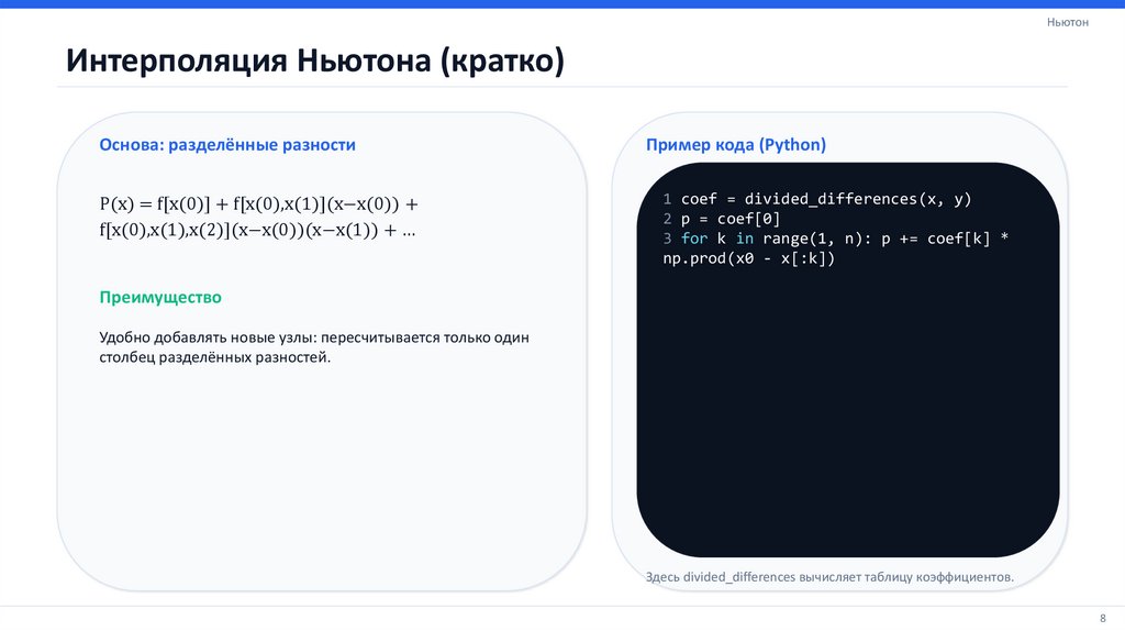 НьютонИнтерполяция Ньютона (кратко)