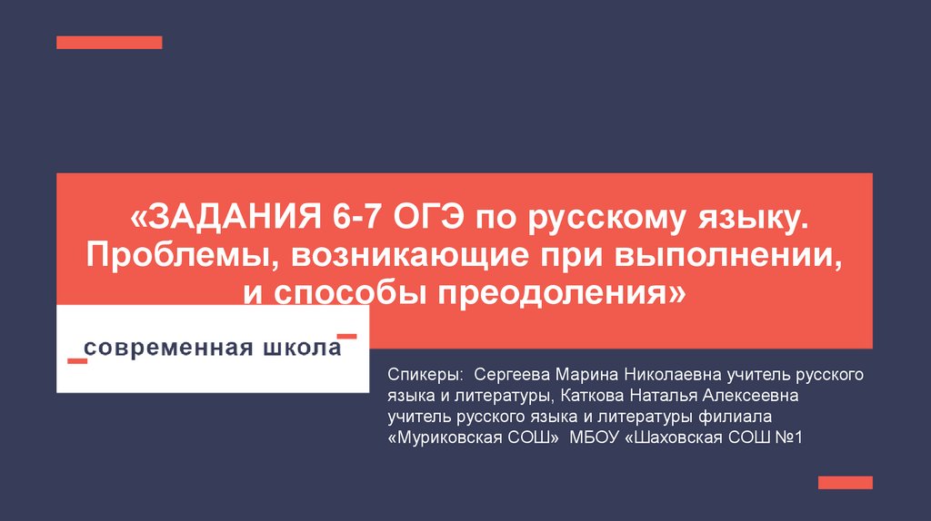 1. «ЗАДАНИЯ 6-7 ОГЭ по русскому языку. Проблемы, возникающие при выполнении, и способы преодоления»