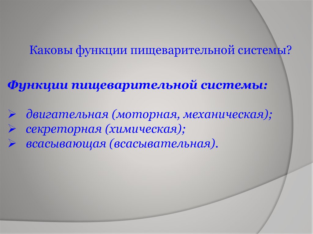 Каковы функции пищеварительной системы?Функции пищеварительной системы: