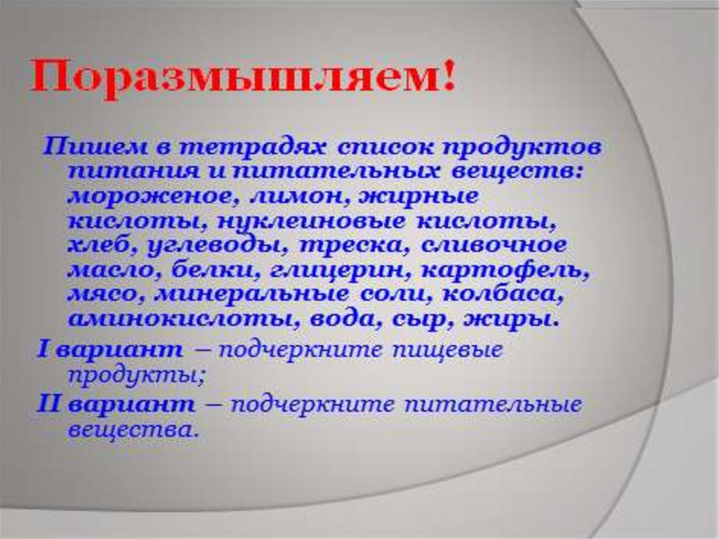 Что такое пищевые продукты?8. Подумай!