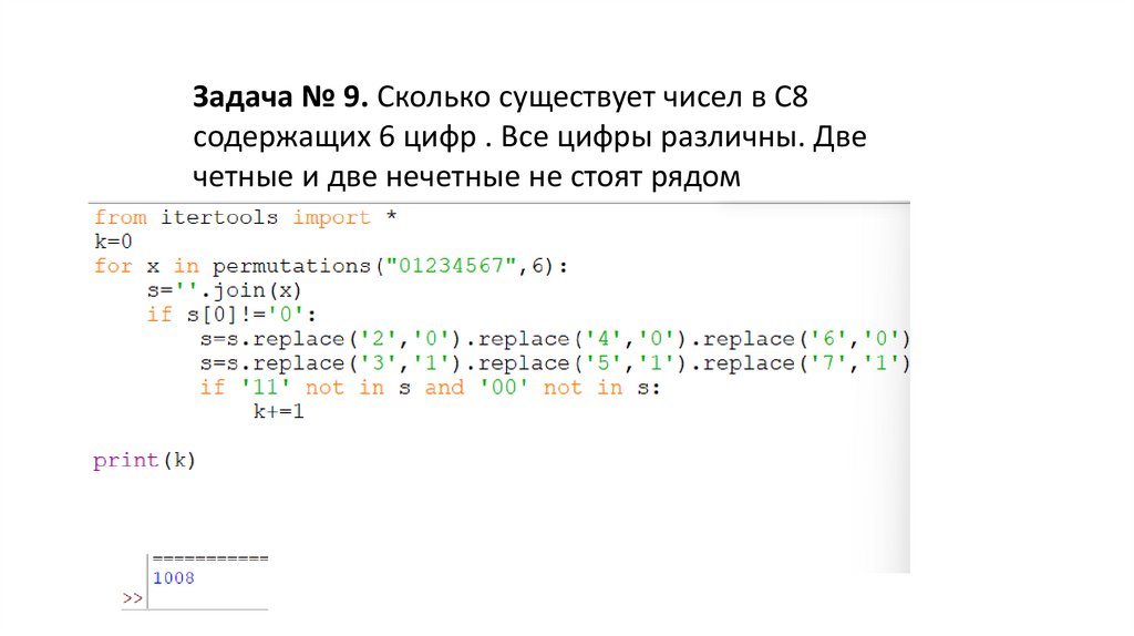 Задача № 9. Сколько существует чисел в С8содержащих 6 цифр . Все цифры различны. Две