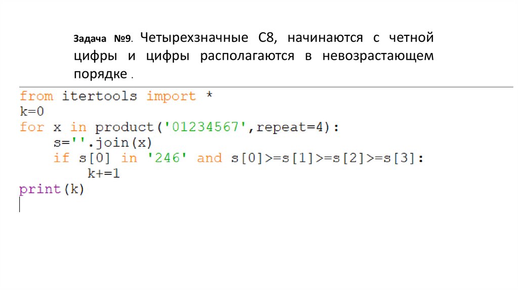 Задача №9. ЧетырехзначныеС8, начинаются с четной