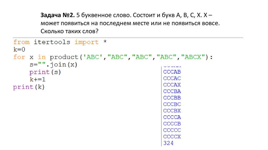 Задача №2. 5 буквенное слово. Состоит и букв А, В, С, Х. Х –может появиться на последнем месте или не появиться вовсе.