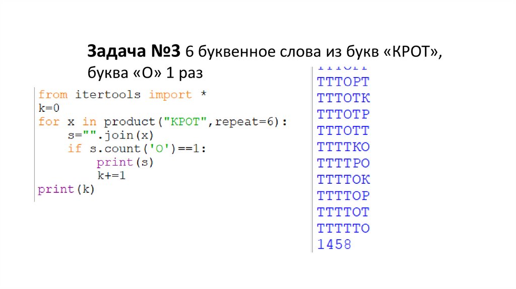 Задача №3 6 буквенное слова из букв «КРОТ»,буква «О» 1 раз