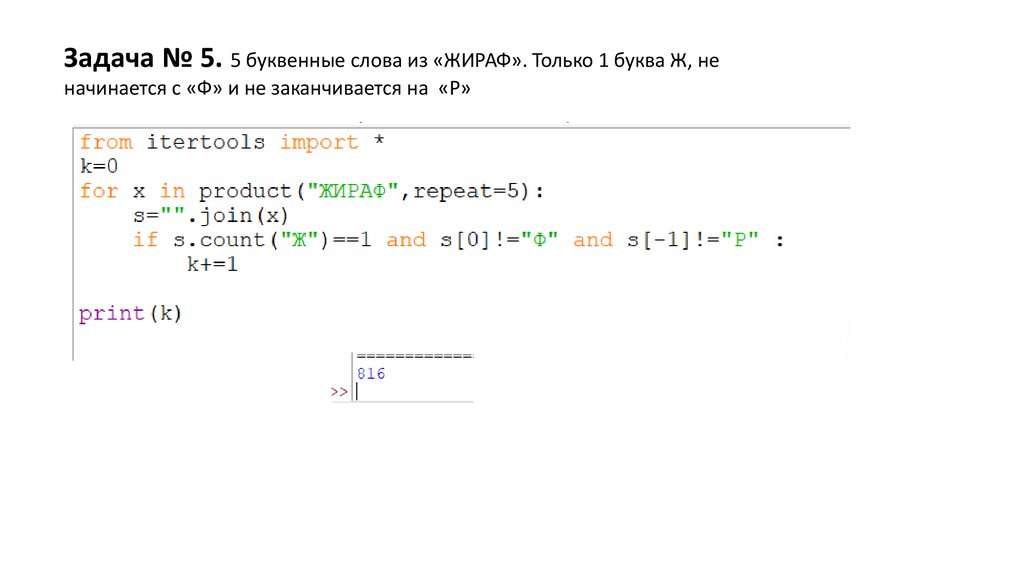 Задача № 5. 5 буквенные слова из «ЖИРАФ». Только 1 буква Ж, неначинается с «Ф» и не заканчивается на «Р»