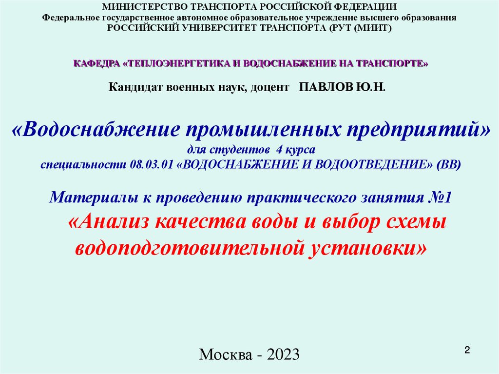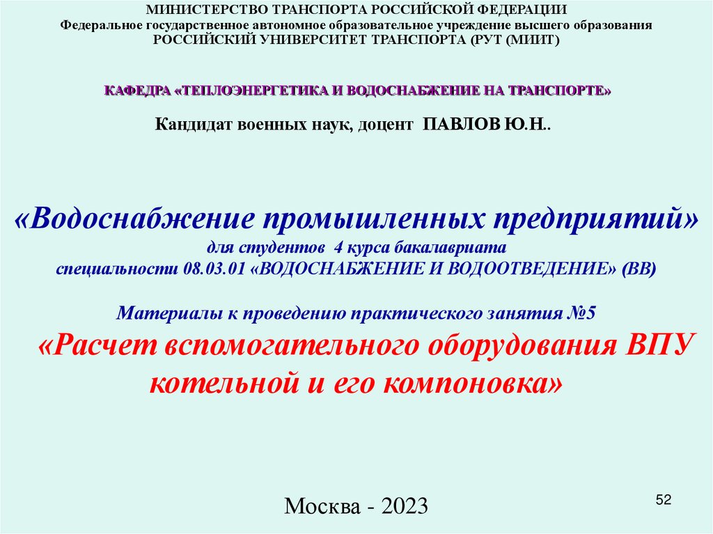 1. Павлов Ю.Н. Водоснабжение промышленных предприятий. Водоподготовка для котельной.