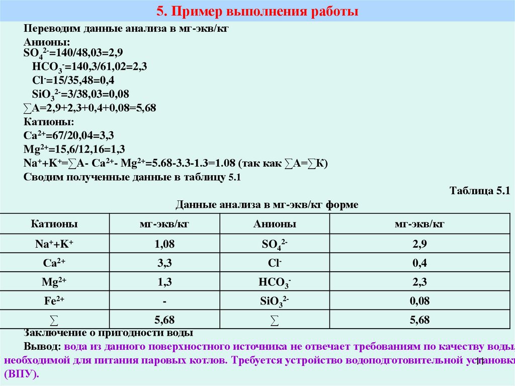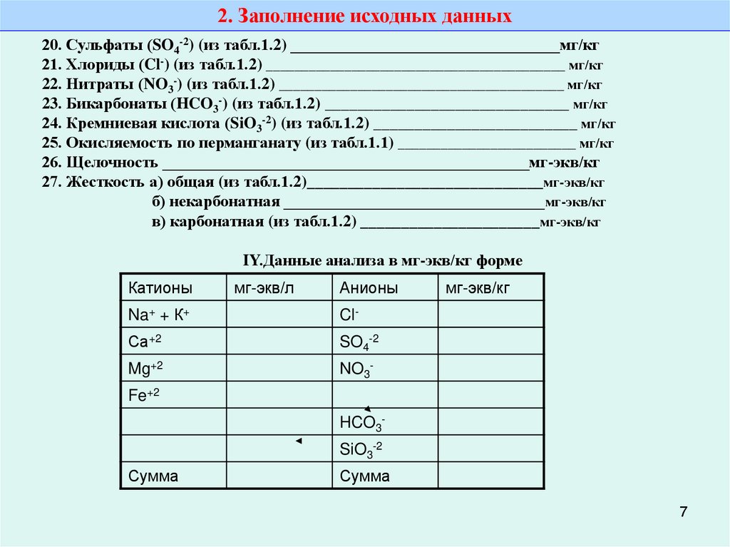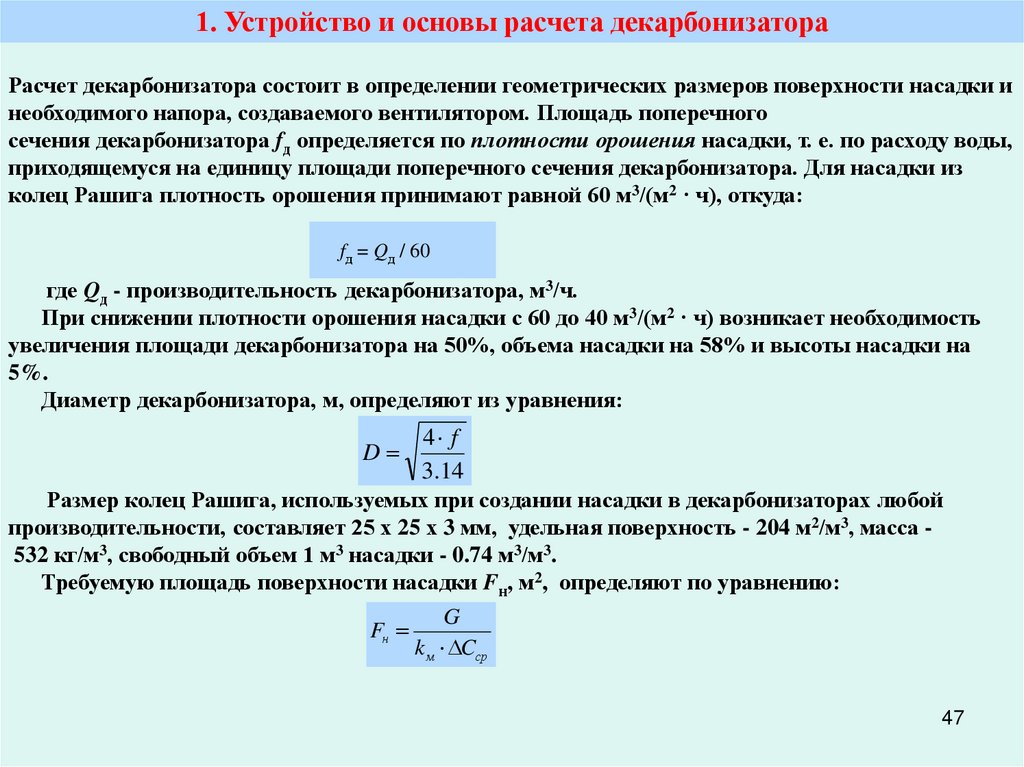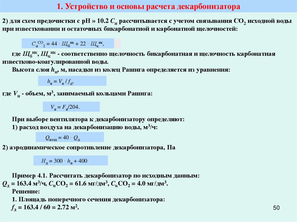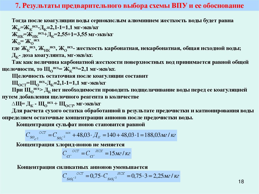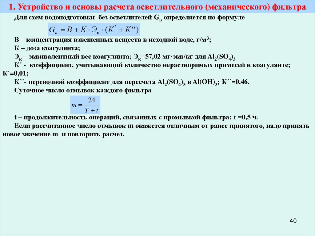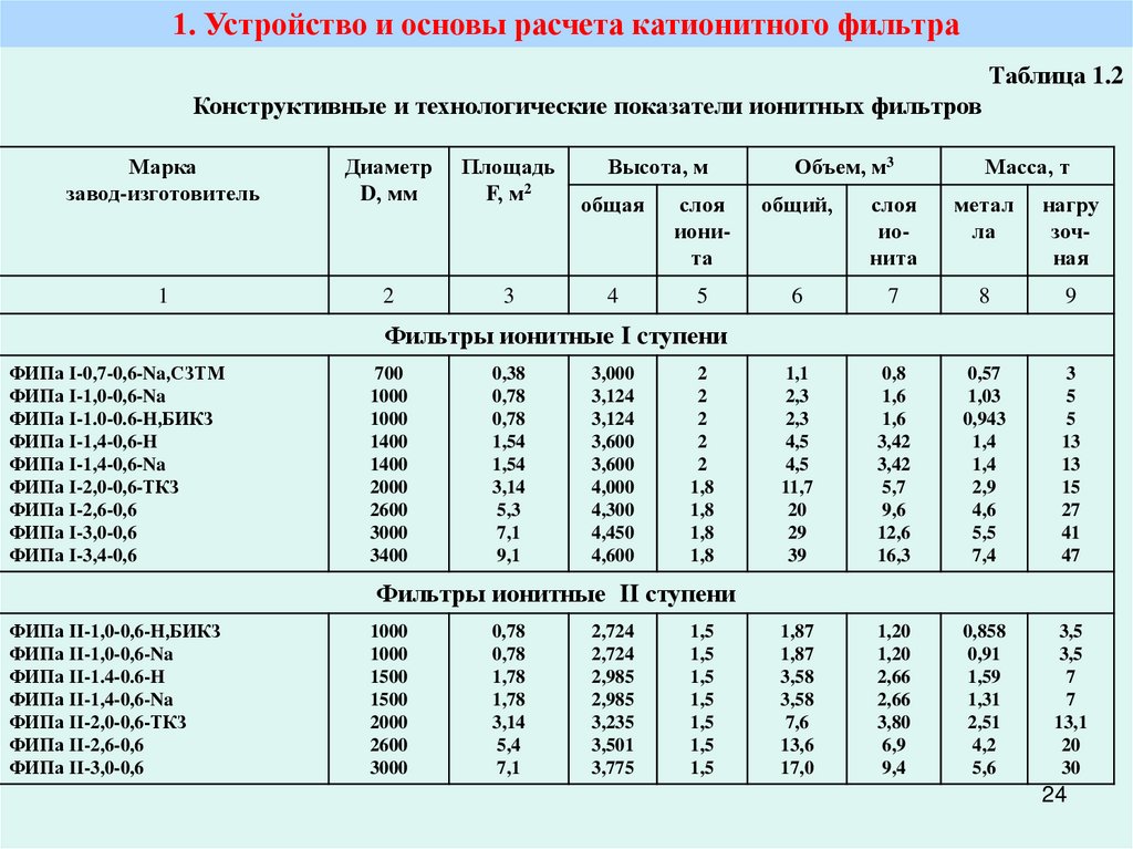 Расчеты начинают с определения расхода 100 % серной кислоты на 1 регенерацию Нкатионитного фильтра. Затем, зная количество регенераций одного фильтра определяют