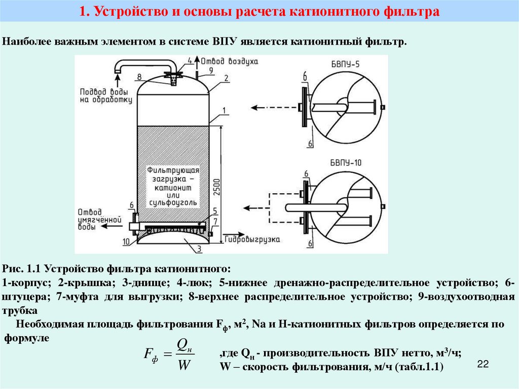 1. Расчет вспомогательного оборудования ВПУВосстановление обменной способности (регенерации) катионитного фильтра