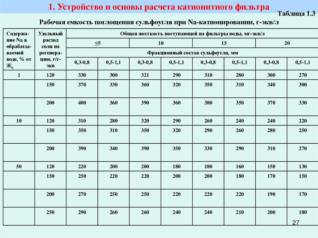 ε- рабочая емкость поглощения катионита, равная 310 мг-экв/м3;