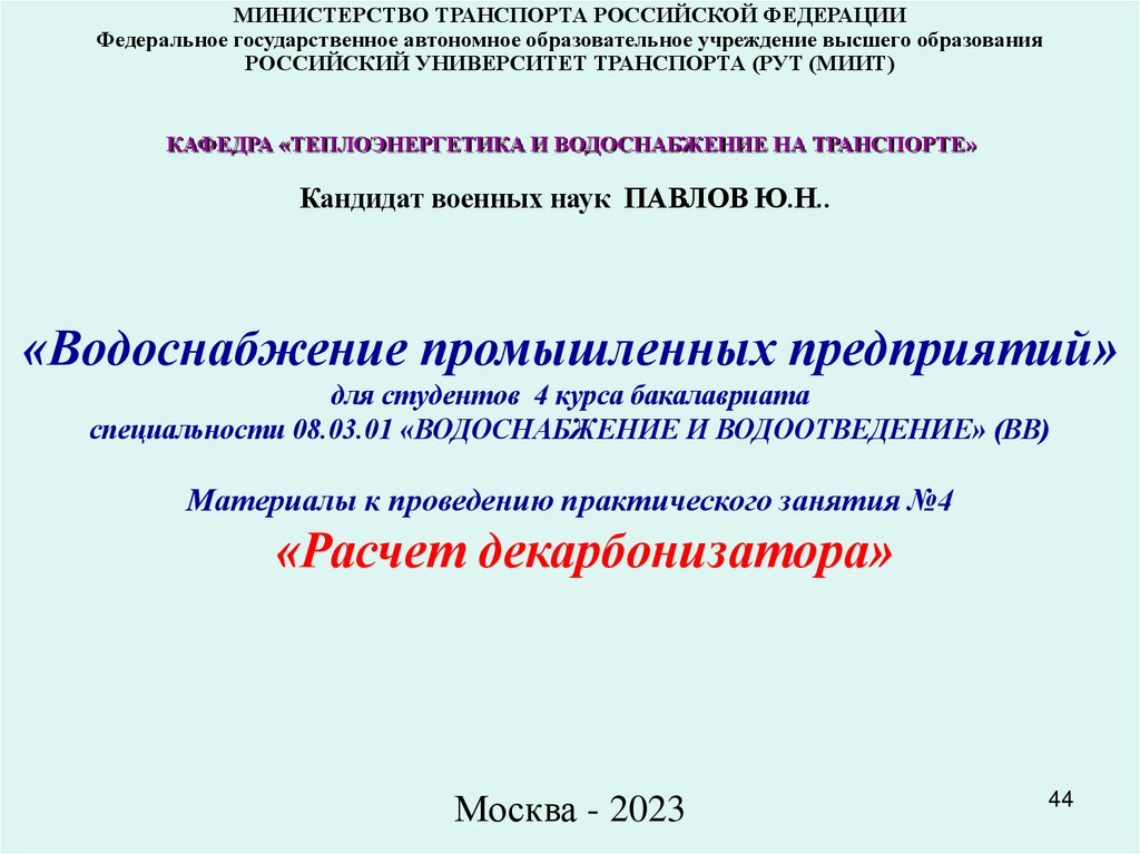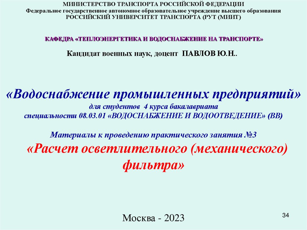 КАФЕДРА «ТЕПЛОЭНЕРГЕТИКА И ВОДОСНАБЖЕНИЕ НА ТРАНСПОРТЕ»