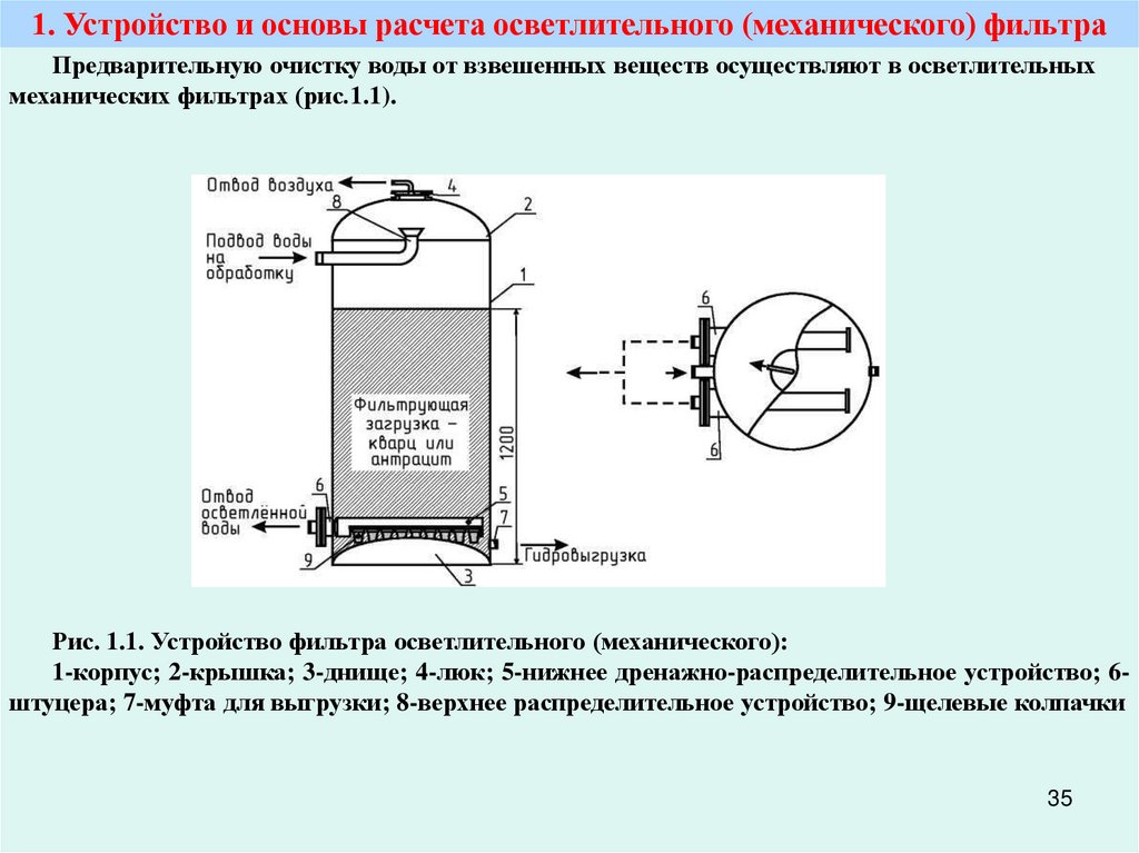 филь-тра. Насос для перекачки регенерационного раствора соли подбирается по расходу