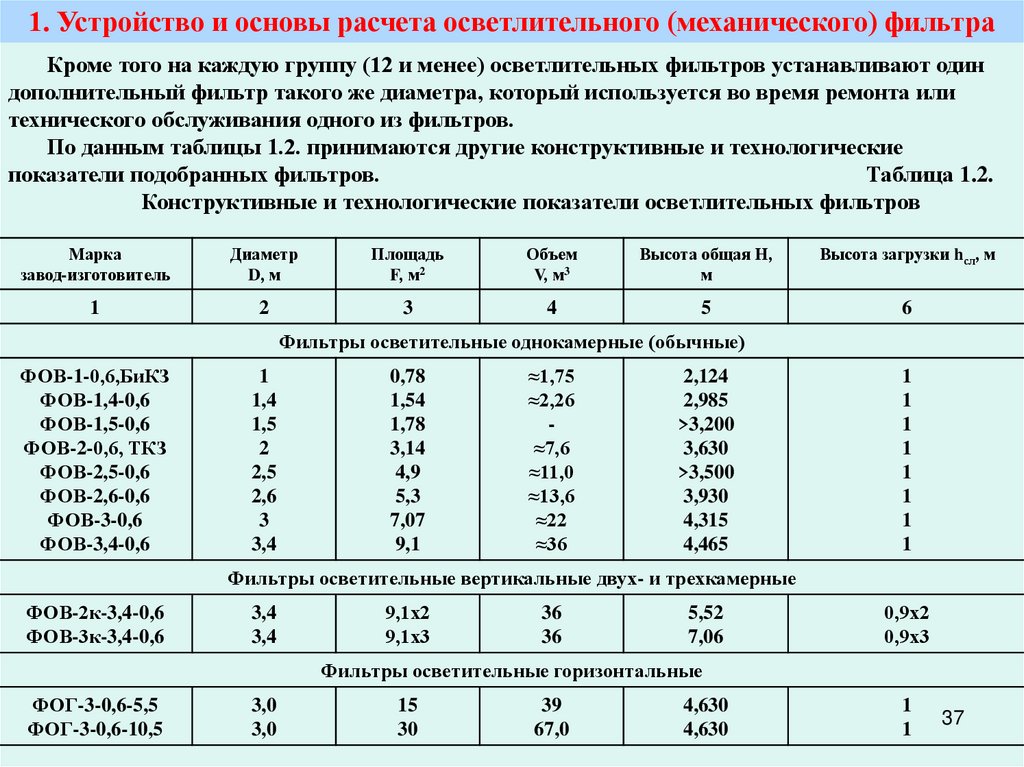 имеющее высоту на 2-2,5 м более полной высоты фильтров. Фильтры располагают в один или