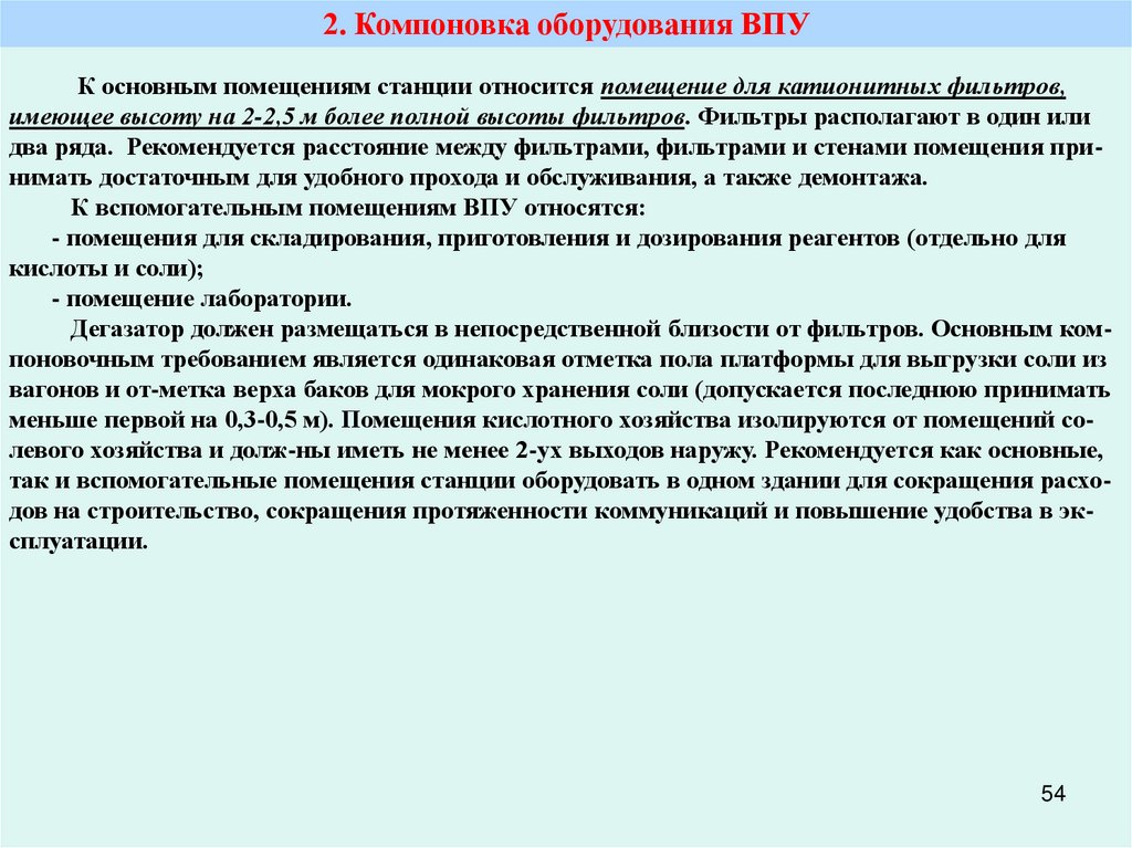 2. Компоновка оборудования ВПУК основным помещениям станции относится помещение для катионитных фильтров,